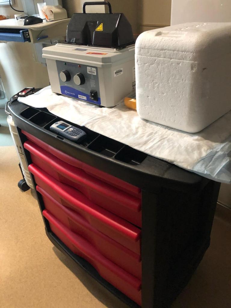 The machine on the left side thawed out the stem cells to the appropriate temperature.